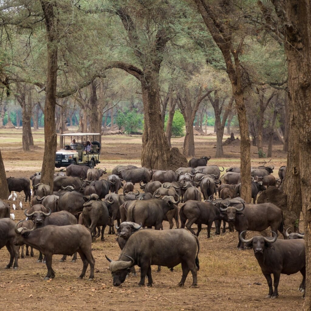 A vast plain stretches from the lodge to the banks of the Zambezi River. The visitor is rewarded with a panoramic view of herds of Elephant, Buffalo, Waterbuck, Hippo, Lion, Leopard, Hyena and Bushbuck grazing on the plains whilst sitting on the porch. A vast plain stretches from the Camp site to the main Zambezi River 2 kilometres away which is house to vast herds of elephant, buffalo, waterbuck, hippo, lion, leopard, bushbuck and hyena. A channel of the Zambezi passes just beside the lodge and offers excellent fishing and boating. Good sized Tiger Fish and Bream catches are routine. There is a “catch and release” policy in the Park. Zambia lies between the equator and the Southern Tropic, enjoying some of the finest climates in the world with mild winters and pleasant summers.