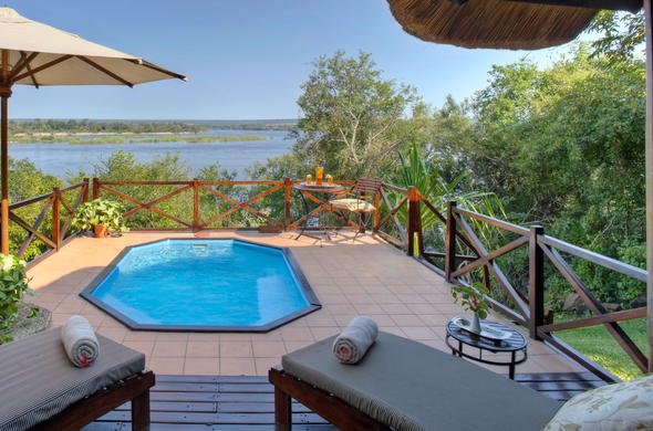 The River Club’s ten luxury chalets are set amongst lush riverine vegetation along a steep riverbank overlooking the Zambezi. The roomy wood and thatch split level chalets are decorated in simple colonial style, each looking into the African sunset, with a special view of the river and Zambezi National Park. In the evening “The River Club” is enveloped in a symphony of sounds of the bush as hippo and lion calls lilt over the water.